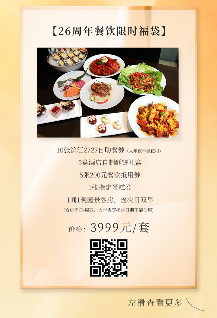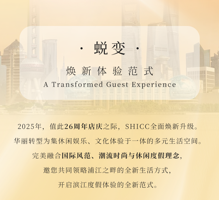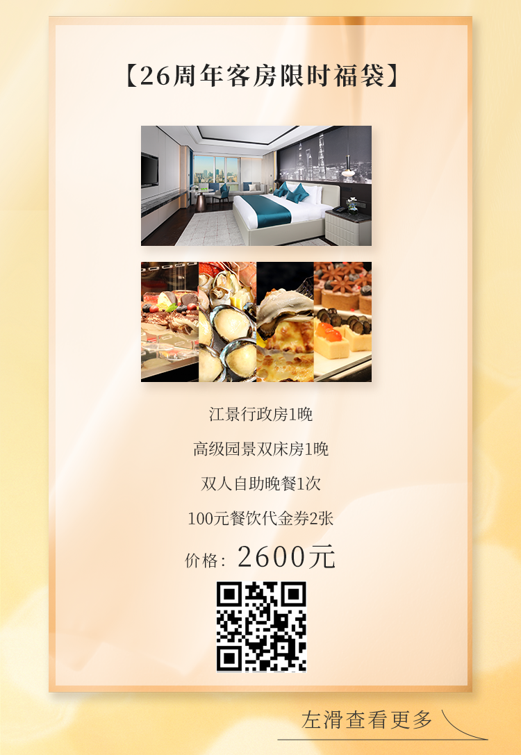 东方明珠旗下上海国际会议中心东方滨江大酒店即将迎来26岁生日!酒店以焕新升级的空间设计,更加舒适的入住体验和完善的配套设施,为四海宾客带来品质服务新享受。即日起,26周年限定“福袋”暖心上线,涵盖客房礼遇、精致美食、文化艺术等多重惊喜,诚邀您与亲友共聚陆家嘴黄浦江畔,一站式畅享专属美好时光。